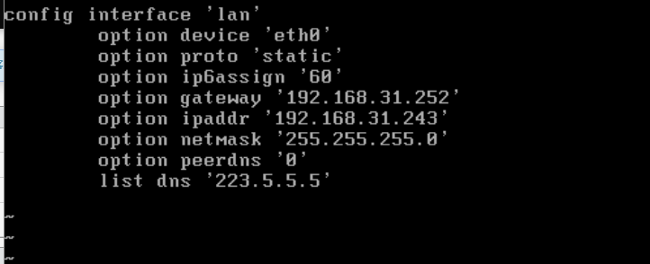 设置后进入/etc/config目录,修改network文件内容