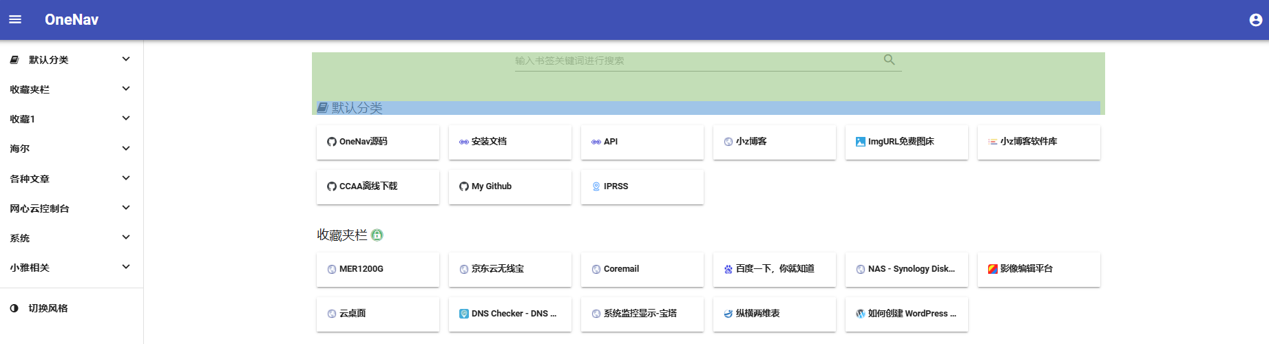 无意间看到开源项目,onenav导航,安装一下看看效果。目前没用起来,主要是平时只用一个浏览器,如果经常换浏览器,用这个可以做到统一,多设备的收藏夹。