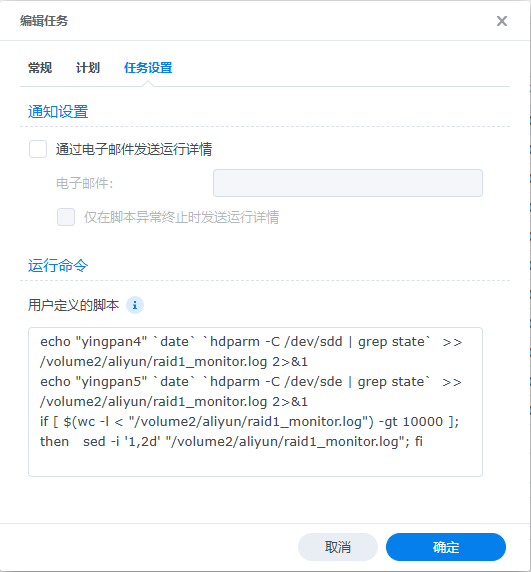 if [ $(wc -l < "/volume2/aliyun/raid1_monitor.log") -gt 10000 ]; then sed -i '1,2d' "/volume2/aliyun/raid1_monitor.log"; fi