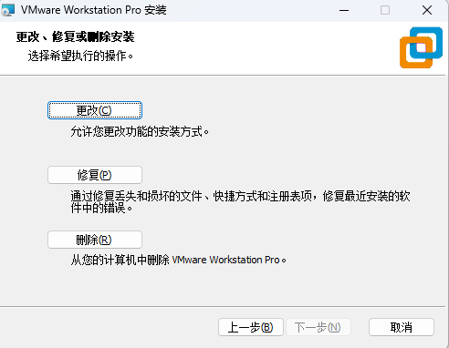 在添加删除程序中,找到VMware,选择修复,一路下一步,会进行修复,修复后会重启,网络有问题也可以通过这种方式修复。修复后还是蓝屏。