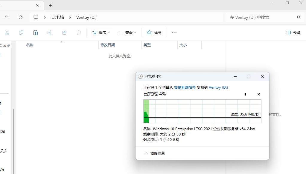 拷贝系统安装文件到U盘,直接放到根目录就行,如果你有别的安装包,比如linux,esxi等,都可以拷进去,安装的时候可以选择。